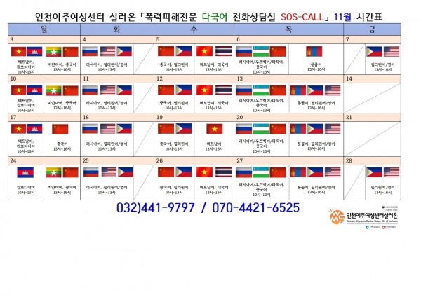 [폭력피해전문 다국어 전화상담실 SOS-CALL] 11월 이용안내