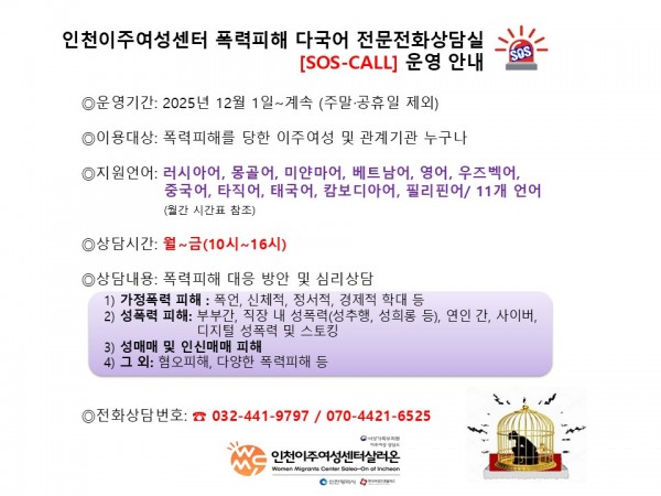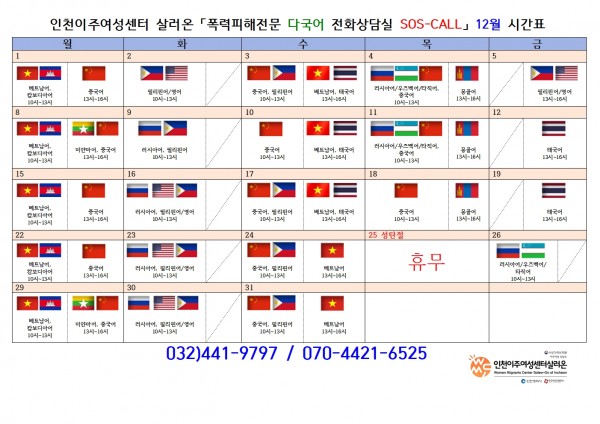 [폭력피해전문 다국어 전화상담실 SOS-CALL] 12월 이용안내
