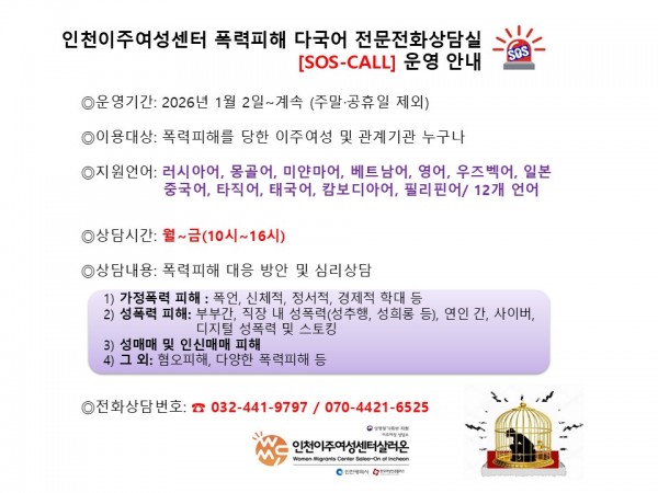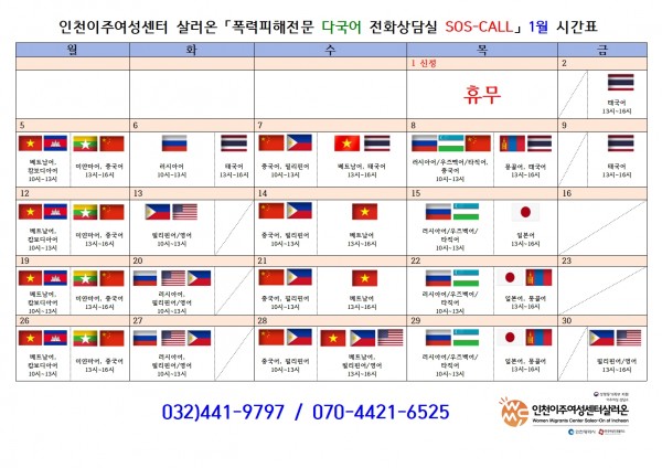 [폭력피해전문 다국어 전화상담실 SOS-CALL] 1월 이용안내